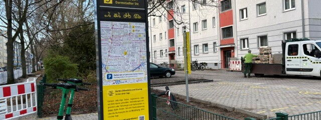 Höhe Darmstädter Straße, am Giebel der Sächsischen Straße 8, entstehen drei neue Stellplätze für geteiltes Laden. Künftig soll hier öffentliches Laden von Elektrofahrzeugen ermöglicht werden. Dafür werden zunächst drei Ladepunkte errichtet (mit jeweils bis zu 22kW Ladekapazität).