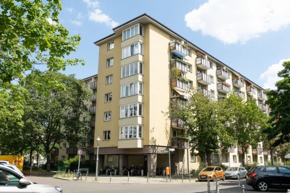 Bei unserer Wohnanlage handelt es sich im Ursprung um einen Gebäudekomplex aus den 1950er Jahren – einer Zeit, in der noch inmitten von Ruinen eine moderne und wegweisende Genossenschaftsarchitektur entstand. Seitdem können unsere Bewohnerinnen und Bewohner das Waschhaus im Innenhof nutzen.